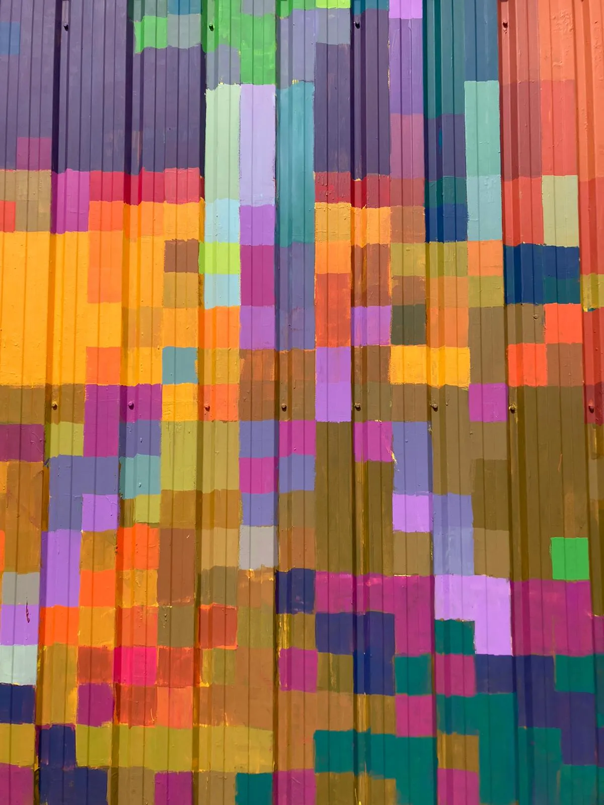 La fresque, réalisée sur 5 cuves et 2 conteneurs et intitulée "Habitat modèle" dépeint une scène de repas sous la forme d'une anamorphose d'envergure.