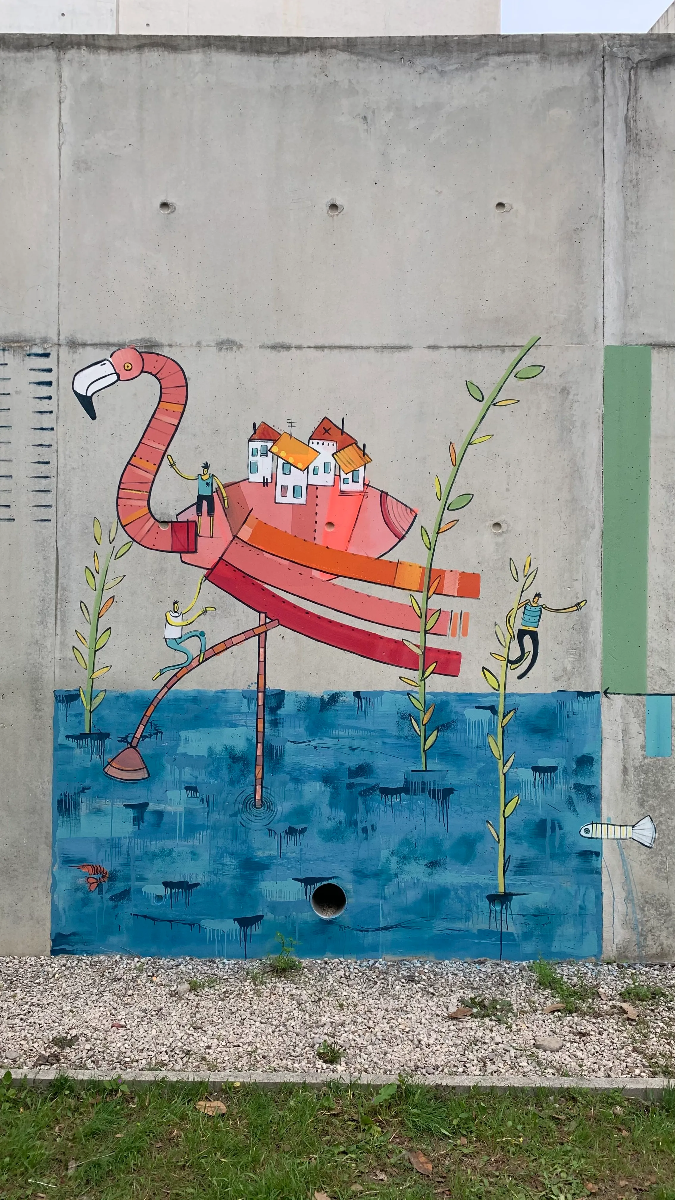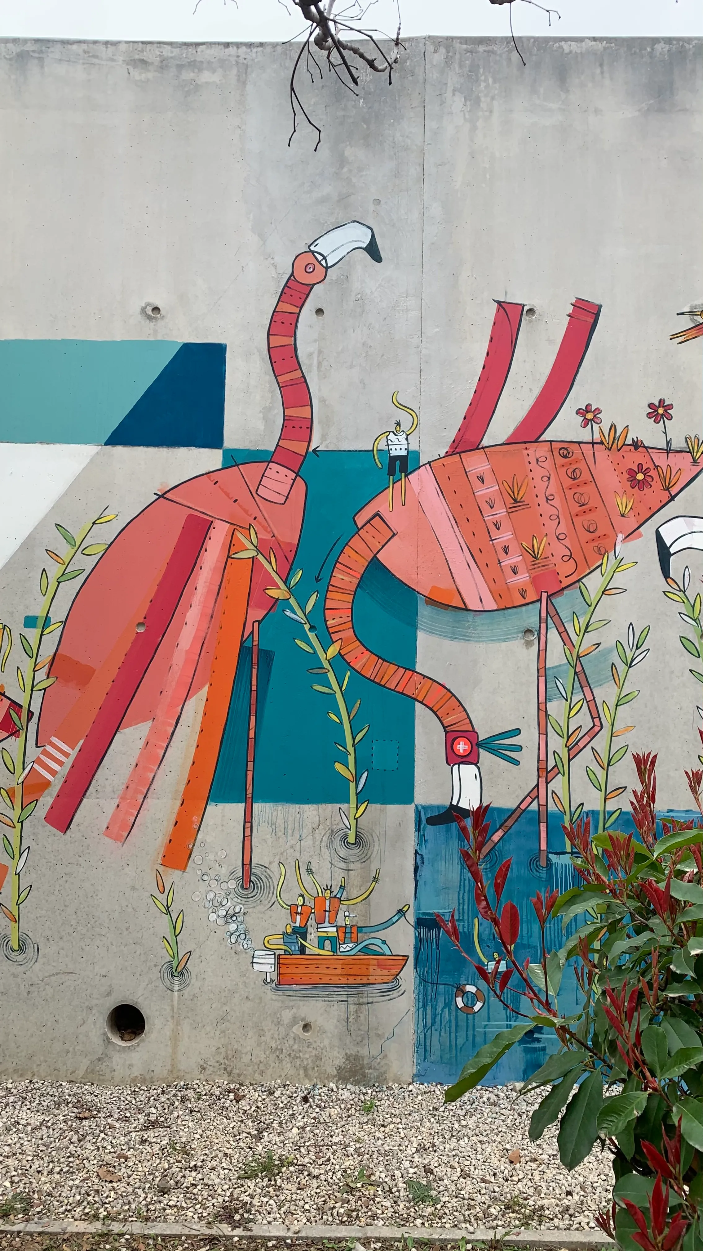 Au total ce sont 23 flamants roses et 100 personnages qui habillent ce mur et offrent un instant d'évasion aux patients, personnels et familles.